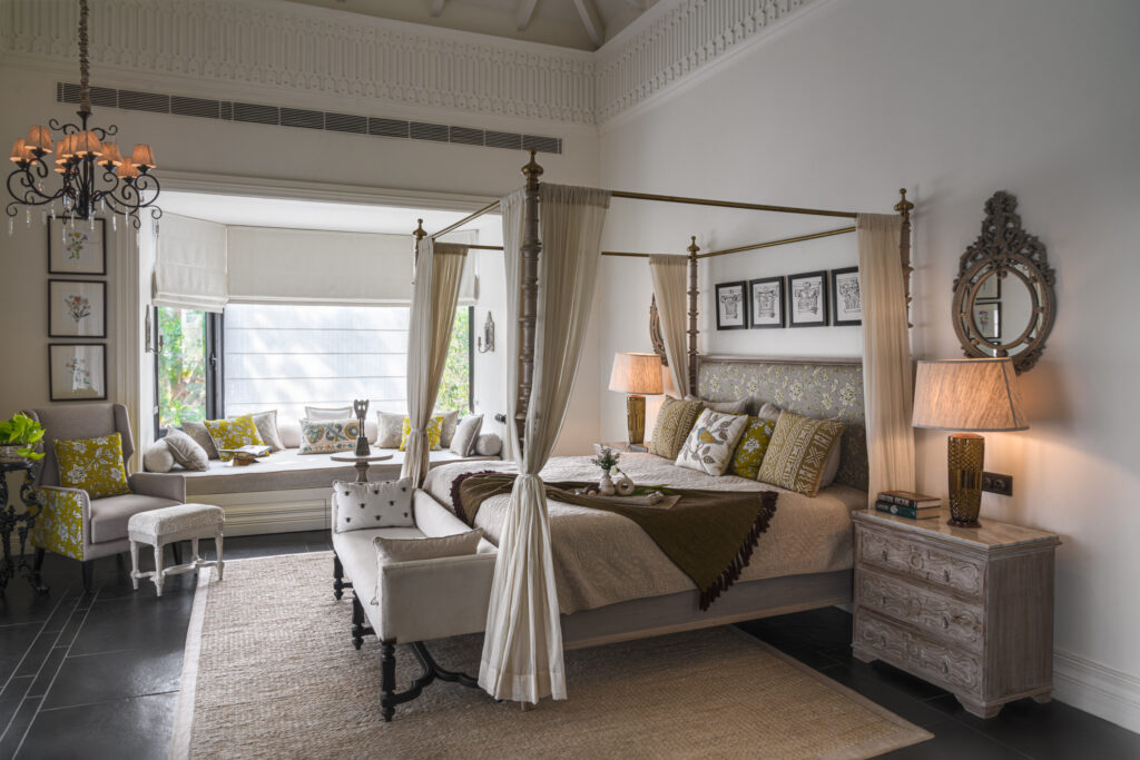 Stately Four-Posters - The bedrooms are anchored by dark-wood four-poster beds - a nod to colonial heritage - set against vaulted ceilings and intricate wall moldings.
