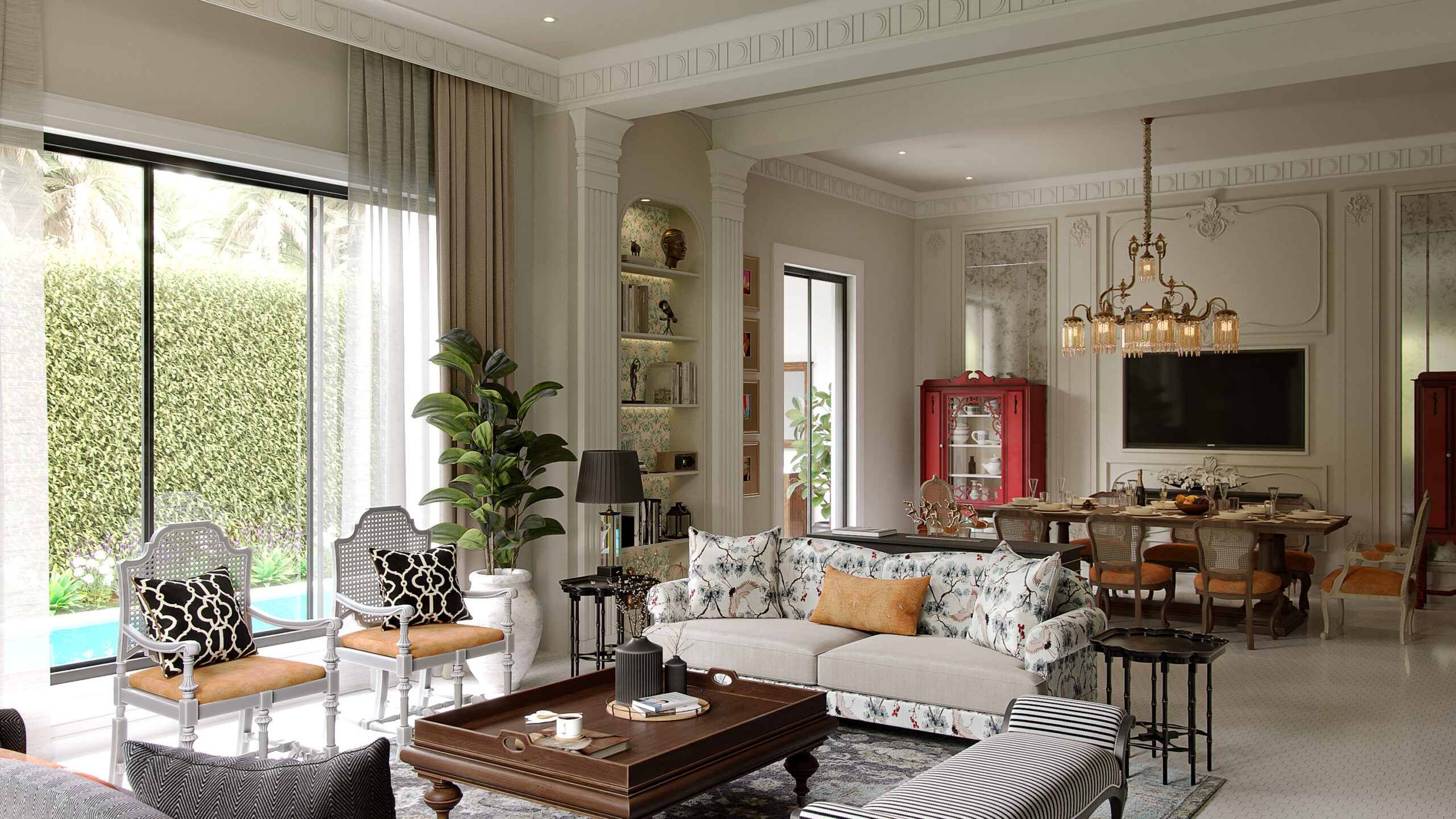 - The Ground: Often anchored by stone mosaic flooring, the floors provide a luminous, expansive base that allows darker, more imposing furniture to breathe.